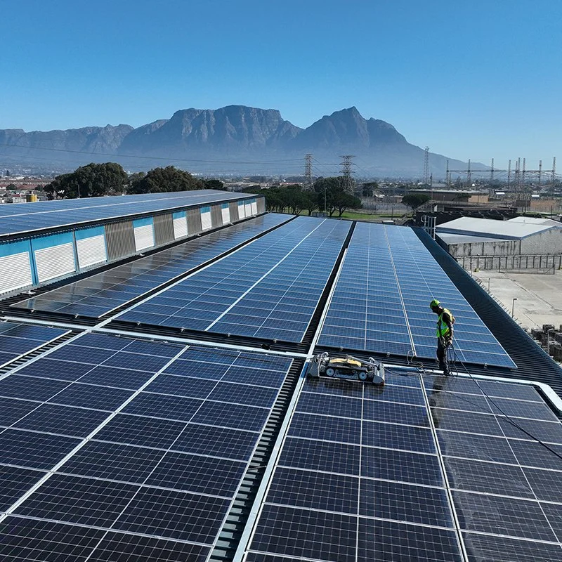 Professional module cleaning service, charged per kWp and scaled according to installation size. Minimum installation size 100 kWp.